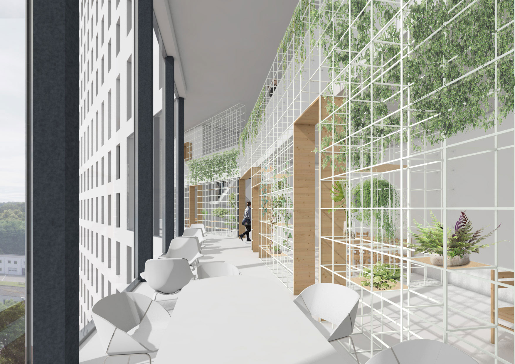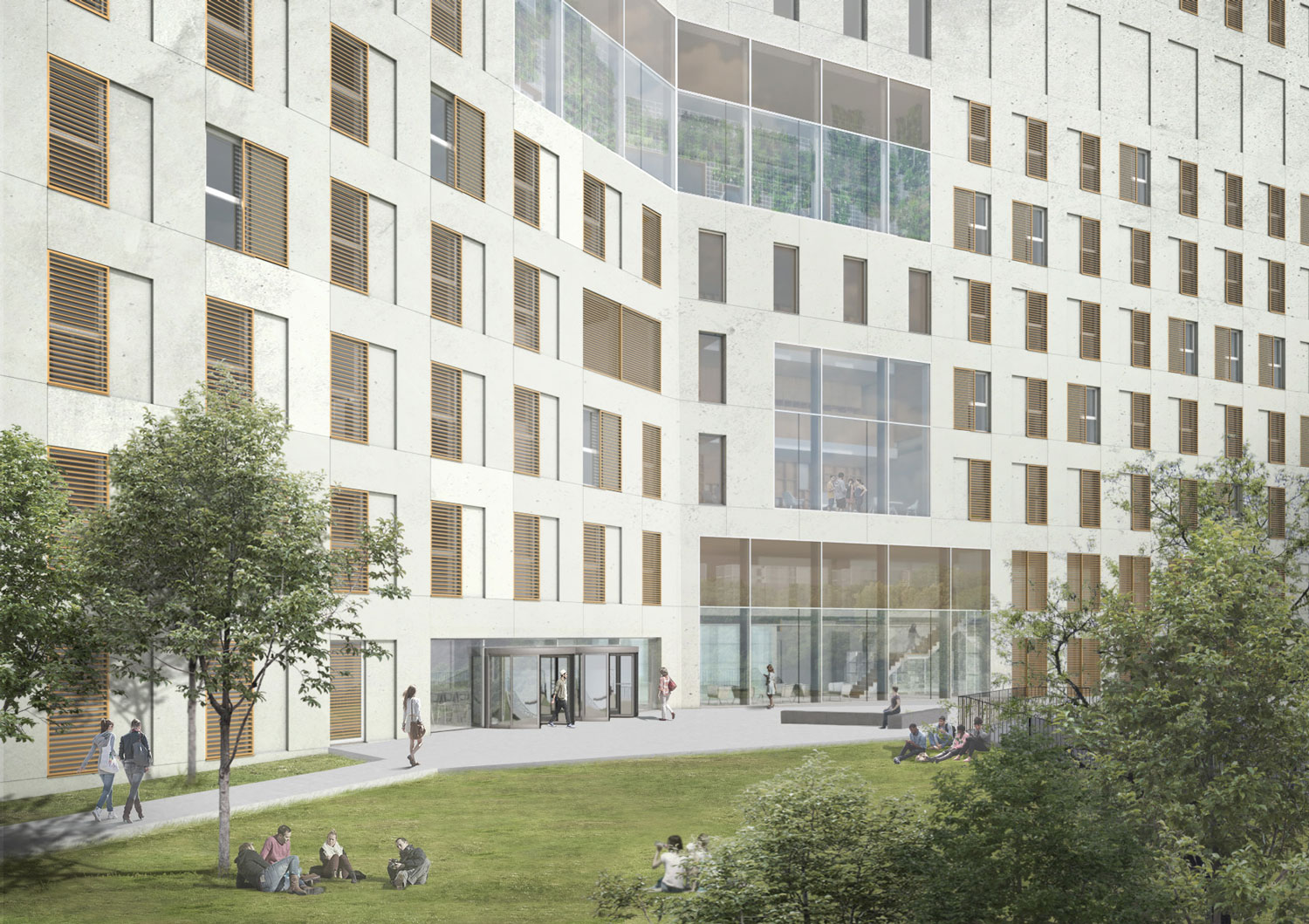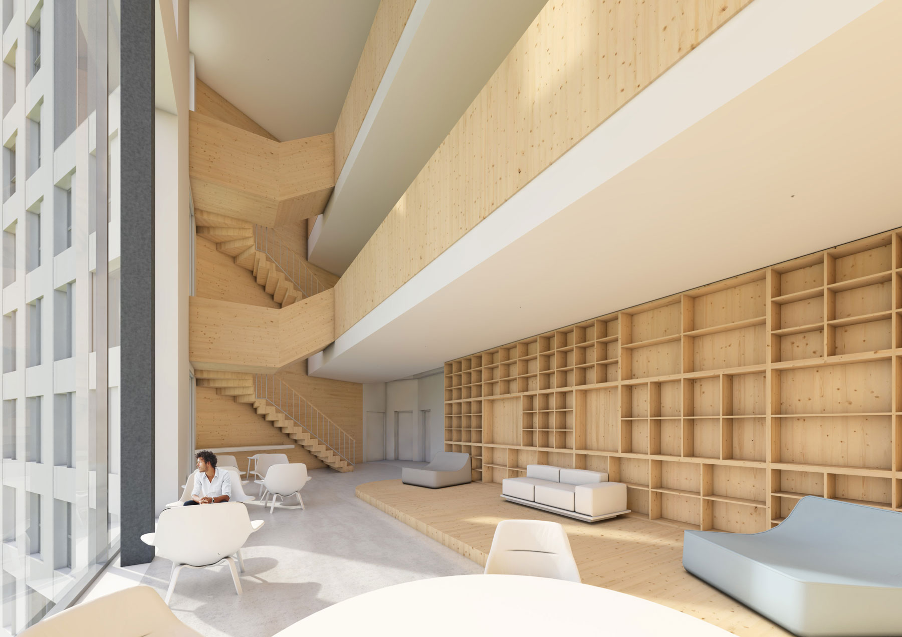 Laboratories powered by a main core with different living spaces to promote knowledge sharing. An open book in the university campus