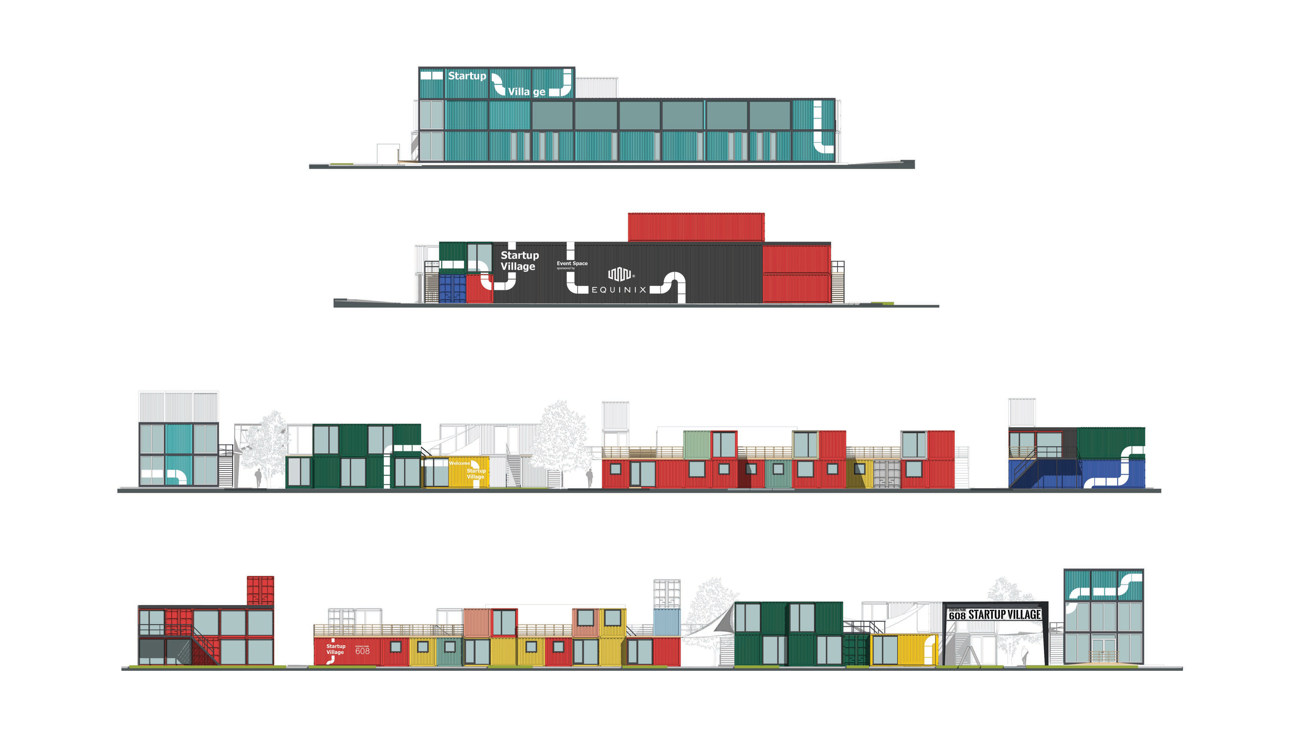 Extension of Julius Taminau design combining exterior design with containers for startups. The future of industrial parks.